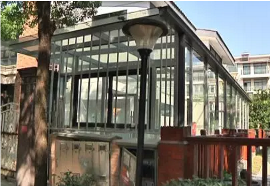 院内被搭建一间很大的阳光房